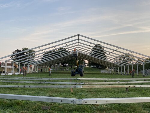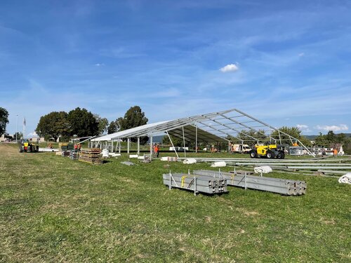 Damit das Kilchberg Schwinget durchgeführt werden kann, braucht es eine enorme Infrastruktur, findet der Anlass doch auf der «grünen» Wiese statt. Für die Verpflegung der Gäste ist ein grosses Festzelt gefragt, denn was wäre ein Schwingfest ohne Festbeiz? Dazu braucht es zahlreiche Tische, Bestuhlungen und viele kleine Pagoden-Zelte. Wie schon seit über 35 Jahren durfte die Zeltvermietung der Lenzlinger Söhne AG auch in diesem Jahr rund 150 Tonnen Material liefern. Am Zentralsten war sicherlich das Festzelt mit einer Grösse von 31 mal 110 Metern plus Küchenanbau und inklusive Bestuhlung, welches rund 4000 Gäste zur Verpflegung eingeladen hat. Dazu kamen diverse kleinere Verpflegungszelte sowie Eingangs- und Zertifikats-Kontrollzelte.